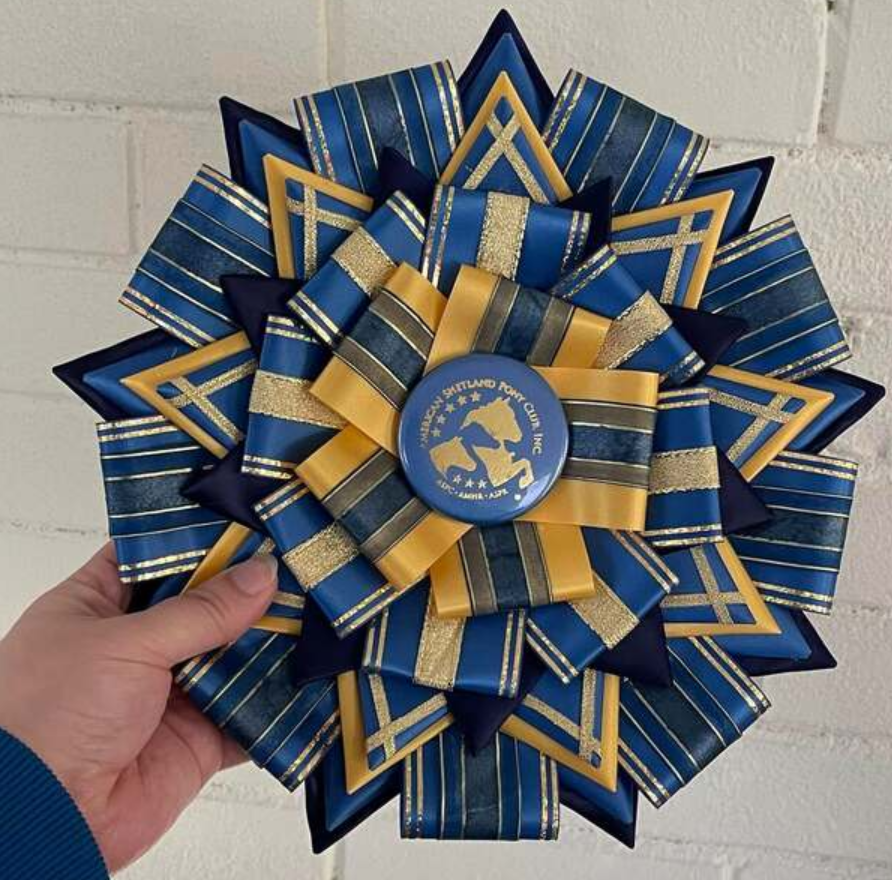 Heidi began with rosettes when Tammy’s Miniature Horse won her class at American Miniature Horse Association’s National Championship and got a less than stellar ribbon. Folks saw the ribbon and wanted ribbons of their own, then clubs, and it’s snowballed from there! Now both Heidi and Tammy’s main focus is on providing beautiful rosettes for events or individuals and supplies.